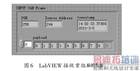 利用NI PXI-8513 CAN 接口板卡实现该系统的硬件接口。NI已为开发者提供了该板卡的底层驱动,可以很方便对CAN节点参数进行配置以及接收和发送符合CAN 2.0的消息帧,然而对于多帧传输机制还需开发者自行设计。由于J1939 协议涉及发送者与接收者的应答,因此在基于LabVIEW开发J1939同时也利用C语言开发基于飞思卡尔单片机的电池管理系统中使用的J1939 协议,两者相辅相成,并且利用VECTOR CANoe软件监视总线,以保证程序开发的顺利进行。