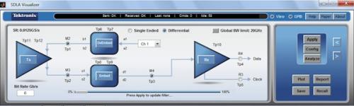 图1:Serial Data Link Analysis Visualizer(串行数据链路分析显示器)应用程序能够在实时示波器中进行实时测量电路去嵌、串行数据链路元件仿真以及实况波形均衡。