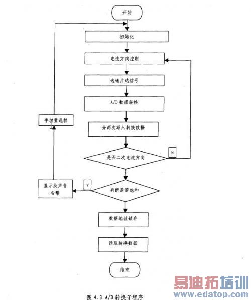这部分程序主要进行阻值计算、误差校正、数字滤波、代码转换等处理。数据处理程序思路:先将存储于数据存储器RAM的电压二进制数据合并为12位二进制数,再进行回路电阻值参数计算,并进行误差校正和算术平均滤波。将测试得到的电压值和计算的回路电阻值转化为BCD码,进行LED显示。数据处理程序如图4.4所示。为进一步提高系统抗干扰能力,确保测试的高精度,对获得的测量值进行数字滤波处理,进行八次测量后剔除最大值和最小值后取平均值,经过软、硬件滤波处理后的系统误差将会明显的降低。