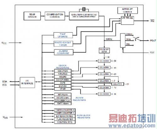 图5:所示是M41TC8025温度补偿实时时钟功能框图。