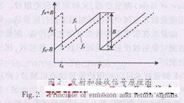 FMcw 雷达通过发射频率调制的连续波信号,从回波信号中提取目标距离信息。FMcw分为线性调频和非线性调频(如正弦波调频)两种。使用非线性调频方式时,每个目标产生的差拍频率不唯一,一般只适用于单目标的场合,如雷达高度计等;线性调频方式适合于用FFT算法测量频率,应用最广。这种方式使每个目标产生的差拍信号都是单一频率,但其对线性调频的线性度要求很高,比较常用的调制波形是三角波和锯齿波,物位仪表常用锯齿波高频方式。FMCW 雷达发射和接收信号的原理如图2所示。