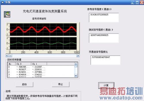 本系统为双通道测量系统,选择使用其中的两个通道CH0和CH1。CHO通道的输入信号为参考信号,CH1通道的输入信号为通过待测溶液之后的测量信号。