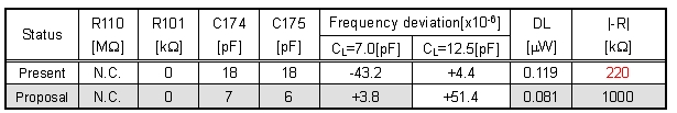 经过测试发现 Cl=12.5pF 的MC-146 在该系统的所有情况下都不能满足全部的参数要求,因此需要更换晶体单元。