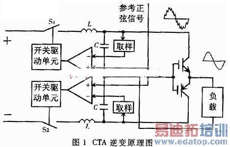 CTA是比较跟踪放大(Compare-Track-Amplify)的英文缩写。它逆变出的波形轮廓完全由提供的参考信号决定。单相的CTA逆变电路原理图如图1所示。