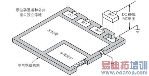 具有隔离功能的示波器与传统的示波器相比,隔离通道内部的电压参考没有连接到一起,因此使用输入的每个参考点必须连接到参考电压上面。如下图所示。