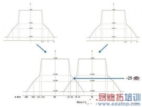 工程师可以通过两个同步的发生器或分析仪生成并采集80+80信号。如图14所示,如果两段属于不同波段,将在每段中应用常规80 MHz频谱屏蔽,但当两段属于同一波段并且为连续时,将在信号中应用叠加的频谱屏蔽。