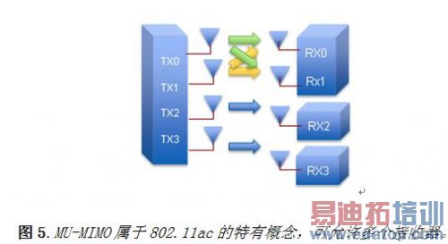 MU-MIMO可允许一个终端同时与同一个波段的多个用户收发信号。MU-MIMO属于高级MIMO技术,可利用多个独立无线电终端以便提高单个终端的通信能力。单用户MIMO仅考虑使用实际连接至每个单独接线端的多个天线。