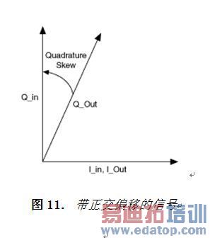 WLAN分析工具包也可以补偿由于发生器/DUT引起的相位偏移。图11显示了带正交偏移的信号。正交偏移补偿最适用于带大量点的调制方式(如256 QAM)。