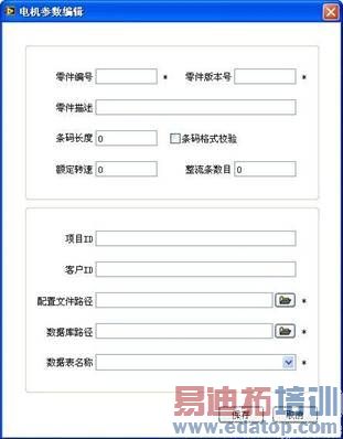 例如,通过配置条码格式,可在测试的过程中校验该条码,控制产品批次的一致性;通过配置电机的配置文件路径,可在测试的 过程中读入该配置文件,配置文件中包含了该型号电机各参数的阈值,测试过程中根据该阈值判断产品是否合格;通过配置电机的数据库路径和数据表名称,可在测 试过程中读入该路径,并把测试结果保存在相应的数据库中。