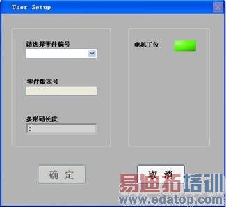 启动测试软件时,会首先进入用户设置界面(参见图7),根据配置软件的内容,系统自动读入所有的电机零件编号,操作者选择一个零件后,系统自动读入该零件的配置文件,作为该批次测试的依据。