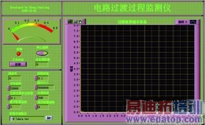 通过对电路过渡过程监测仪开发实例的介绍,我们可以发现虚拟仪器的硬、软件具有开发性、模块化、可重复使用及互换性等特点。而且虚拟仪器可以方便地加入一个通用仪器模块或更换一个仪器模块,而不用购买一个完全新的系统,有利于测试系统的扩展,这样的操作所需的费用很低。而且在虚拟仪器这个高效的开发平台上,学生可以自己设计和实验,有利于培养学生的创造性思维和工程实践能力。通过通用计算机和简单的信号处理箱,辅以少量的硬件设备,就可以建成可以完成各种电路电子实验的虚拟仪器实验室,进而可以通过校园网形成网络虚拟实验室。开发过程中,需要有经验的老师和同学解决虚拟实验中的问题。