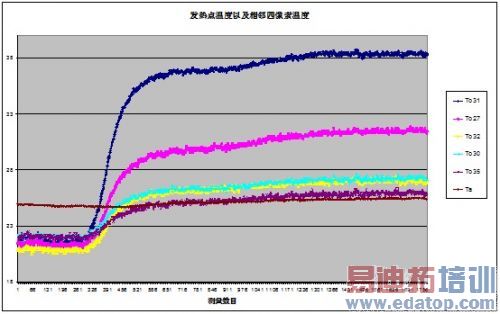 图 4 所测发热点温度及相邻像素温度变化图