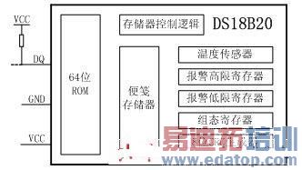 图1 1-Wire技术的温度传感器DS18B20功能块图