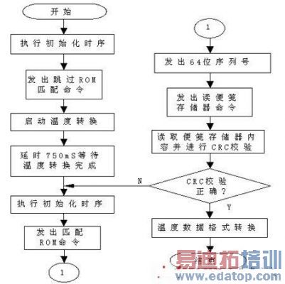 图5 基于1-Wire技术的DS18B20温度采集与处理程序流程图