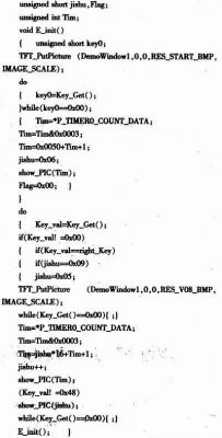 1)main主程序函数模块对整个程序部分进行控制并根据需要调用各个子函数(如:TFT_PutPicture、show_PIC、Key_Show函数等),是一个循环函数。主函数作用是总体协调各个模块。实现系统各函数间合理有序的配合,完成测试所需的目的。