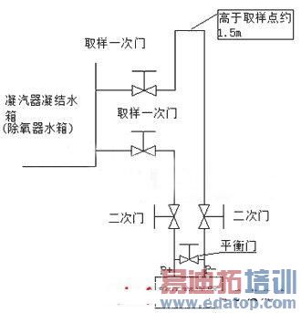 根据凝汽器凝结水箱水位测量原理(改进后),由于变送器的仪表管只有正压侧仪表管(与下取样点相连的仪表管)内充满介质,负压侧仪表管内无介质,需要在仪表投运前对变送器迁移量程,迁移量程的大小取决于变送器安装的高度;在仪表投运前,需检查仪表管的严密性,特别是仪表接头、取样平衡门及排污阀门;所有液位等差压类变送器的取样仪表管在水平方向要有一定的坡度,坡度须大于1:12;若凝汽器液位变送器设计为双法兰隔膜式液位测量变送器,可按照图一 凝汽器凝结水箱水位测量原理进行安装,法兰安装于取样一次门后水平管段即可。