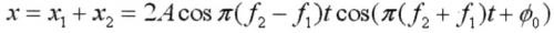 两个简谐振动的表达式分别为x1=A1cos(2πf1t+φ10)和x2=A2cos(2πf2t+φ20),若.A1=A2=A,则其合振动为: