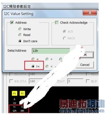 然后再搭配逻辑分析仪撷取波形后自动储存功能,就很在烧机的过程中,每次触发成功就存档,之后再检视存档波形之触发点即可。善用I2C 触发功能可以快速的协助波形定位,会比资料抓得多来的有意义很多。同样的,善用整个使用I2C 参数来做为触发条件,例如地址符合或资料符合或多阶式的触发来指定更精准的触发,这些都是单纯使用边缘触发(Edge Trigger)所无法做到的功能。