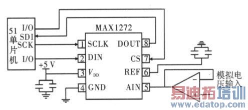 图4 中MAX1272 采用了内部参考电压,6 脚VREF 和地之间接2. 2 μF 钽电容和0. 1 μF 陶瓷电容。