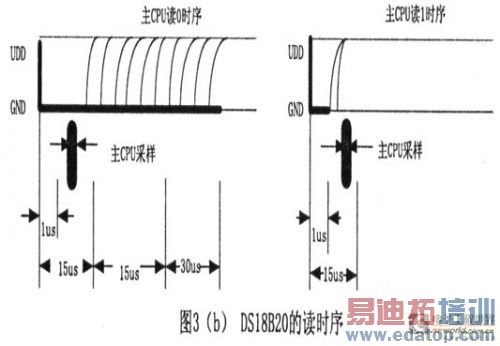 对于DSl8820的读时序分为读0时序和读1时序两个过程。对于DSl8820的读时隙是从主机把单总线拉低之后,在15秒之内就得释放单总线,以让DSl8820把数据传输到单总线上。DSl8820在完成一个读时序过程,至少需要60us才能完成。