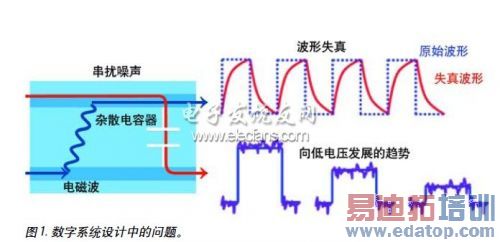 最近几年随着多Gbps传输的普及,数字通信标准的比特率也在迅速提升。例如, USB 3.0的比特率达到 5 Gbps。比特率的提高使得在传统数字系统中不曾见过的问题显现了出来。诸如反射和损耗的问题会造成数字信号失真,导致出现误码。另外由于保证器件正确工作的可接受时间裕量不断减少,信号路径上的时序偏差问题变得非常重要。杂散电容所产生的辐射电磁波和耦合会导致串扰,使器件工作出现错误。随着电路越来越小、越来越紧密,这一问题也就越来越明显。更糟糕的是,电源电压的降低将会导致信噪比降低,使器件的工作更容易受到噪声的影响。尽管这些问题增加了数字电路设计的难度,但是设计人员在缩短开发时间上受到的压力丝毫没有减轻。