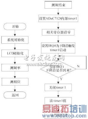 本系统的软件设计主要是完成系统初始化、内部数据处理、数据结果显示等功能。图4 是系统的主程序和相位测量流程图。