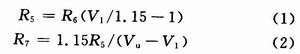 U4为LM4041—1.2,该芯片为微功耗精密稳压管。电阻Rs负责提供稳压电流IL和负载电流IQ。Rs的取值应满足流过稳压管的电流IQ不超过IQmin和IQmax。Rs的计算公式如下: