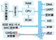 (3)片内集成5通道dma;mac定时器;1个16位、两个8位普通定时器;32khz睡眠定时器;电源管理与片内温度传感器;8通道12位ad转换器;看门狗等智能外设[3]。高密度集成化电路节约设计成本。