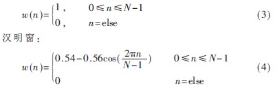分帧后帧之间重新拼接处语音信号的频谱特性和原来相比会有差异。为了使语音信号在帧之间重新拼接处的频谱特性与原来更加接近,就要进行加窗处理。在语音信号处理中常用的窗函数是矩形窗和汉明窗[5]。它们的表达式如下(其中N为帧长):