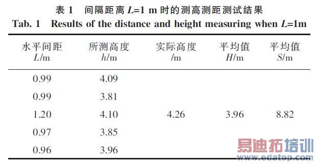 1)离被测点水平距离9.26 m,以L=1 m为差值不断前进,测同一点高度,记录如表1所示。