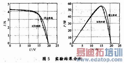 二种方案所得的理论和试验曲线吻合度较好,验证了设计的可行性。并且比较两者,考虑到影响光伏电池输出特性的内、外部因素复杂,实验曲线比理论曲线更接近电池板实际工作状况,因为方案(2)测试时间很短,更能确保不变的日照条件。