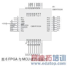 FPGA采用Altera公司的EP1C3T144,具有2910个逻辑单元,可用IO引脚达104个,集成1个PLL模块,使用与1.5V联合供电,上电次序可任意配置,可灵活选择使用主动串行方式或者JTAG方式进行调试,外接50MHz有源晶振为芯片提供基准频率。