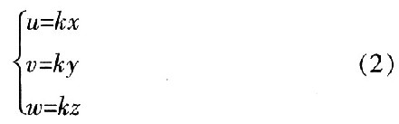 将式(1)两边同时乘以k,将式(2)代入,再把u,v,w代换成x,y,z,得:
