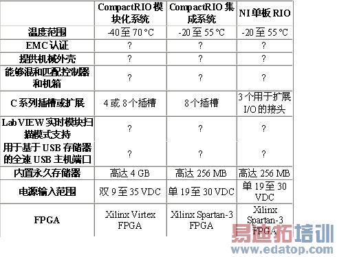 表1:NI RIO硬件比较