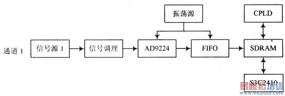 对多路信号同时锁存,若不允许丢失数据,必须在单个采集时钟周期内把多通道锁存的数据存入同一存储器中。假设同步采样频率为fs,通道数量为m,每个通道的存储时间为tn(n=1,2,3,…,m),则有t1+t2+t3+…+tm一1/fs,既所有通道存储时间之和为采样周期。
