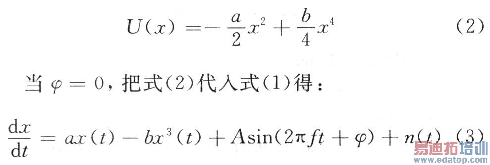 产生随机共振现象需要三个基本条件,即非线性系统、输入信号和噪声。在存在噪声和周期信号激励的情况下,考虑双稳势中布朗质点的过阻尼运动: