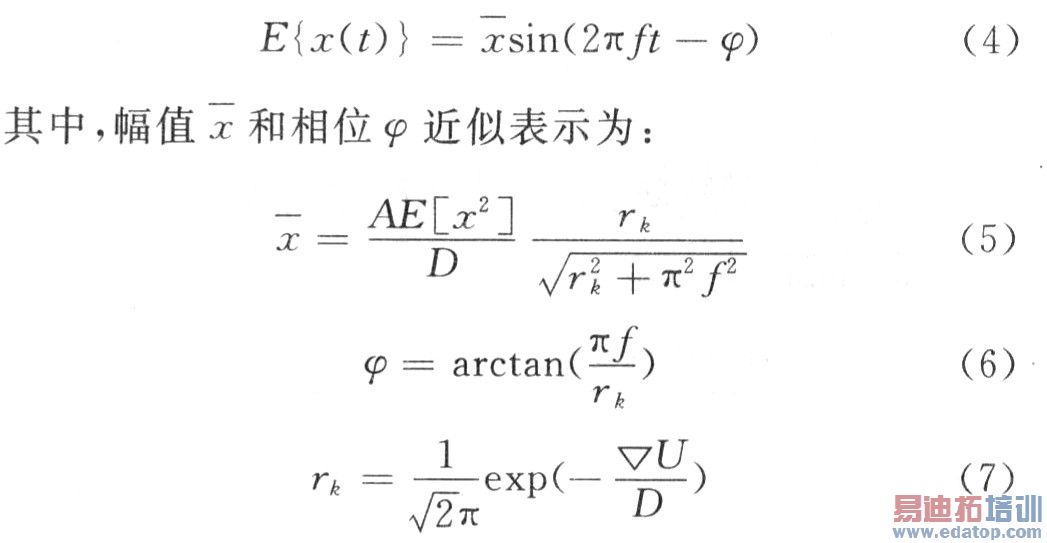 另外,对输出响应x(t)进行分析,在初始条件x0=x(t0)下,若t0→-∞,则初始条件的影响会消失而不用考虑,于是x(t)的均值将变成为一个周期函数: