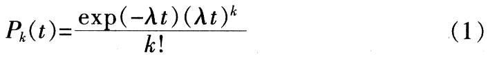 (1)式中给出了在时间t内到达k个帧的概率Pk(t)的计算方法,其中λ是平均到达间隔的倒数。