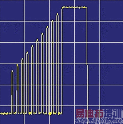 ·使用频谱分析仪测量前导部分的数量,测量第一个功率爬坡周期的第10 个前导和第二个功率爬坡周期的第1 个前导之间的时延。
