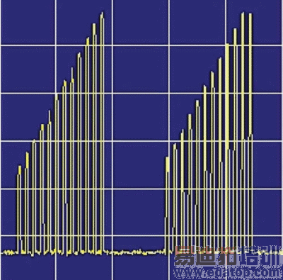 虽然测得两次功率爬坡循环之间时间为166.5ms ,符合规范要求。但是,在第一个循环内前导的数量是9 个,而不是规范要求的10 个前导。因此,此项测试结果为失败。