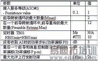 ·根据通用呼叫建立过程建立一个呼叫。根据表1、表2(将最大允许上行发射功率设为0dBm)和表3 设置测试参数。使用呼叫建立过程中的PRACH 过程。系统模拟器在AICH 信道上不发送任何消息。