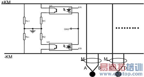 在系统中,我们实时监控正母线电压U+、负母线电压U-和漏电流传感器M点的电压值,根据这三个电压值和u+、u-,我们便可以得出母线和支路接地的极性,母线和支路接地电阻的大小。