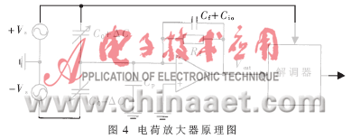 若运算放大器具有足够的开环增益,反相输入端为很好的虚地,那么,两输入端点之间的电位差为零。因此,反相输入端对地的分布电容Cp和放大器的输入电容Cgs对电路测量不会造成影响。电荷放大电路相对于单位增益放大电路来说,结构要简单,不需考虑等电位屏蔽问题;只需将杂散电容的影响转化为对地的分布电容,即进行合理的对地屏蔽,就能获得较好的效果。