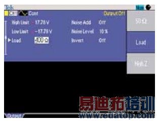 在标准设置中,任意波形/函数发生器通常配置成50Ω的负荷阻抗。对其它负荷阻抗,阻抗值可以配置到仪器中,可以显示正确的幅度和偏置值。在AFG3000系列中,负荷阻抗设置在Output菜单中进行,按所需的功能键如“Sine”后可以进入菜单。