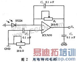 光电转化电路将传感器光电二极管输出的微电信号放大,光电转换电路如图2所示。