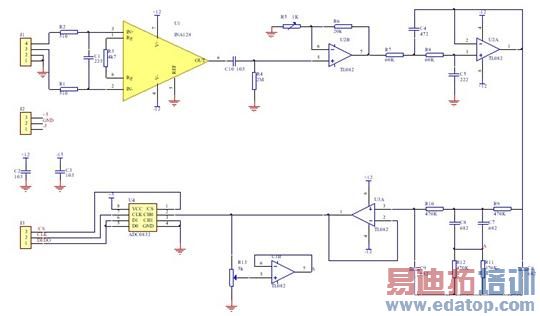 人体是一导电体,工频干扰及体外的电场、磁场感应都会在人体内形成测量噪声,干扰sEMG的检测,所以信号的滤波和电路的屏蔽成为表面肌电信号数字传感器设计的重点。分为几个部分:电极、放大电路、滤波电路、A/D转换。