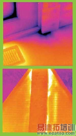 图1 红外热像仪检测出地板漏入的冷空气