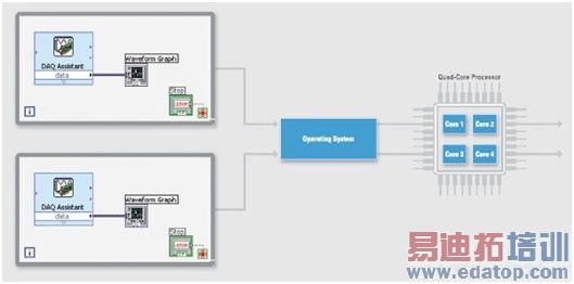 图1.LabVIEW编译器在不需要用户配置的情况下,即可为并行代码段创建独立的执行线程