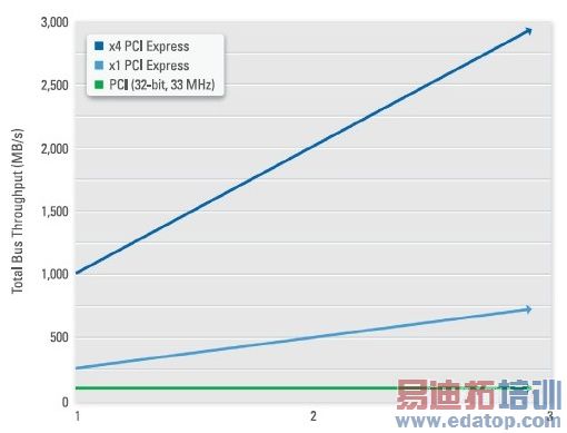 图3.PCI Express实现了专用带宽而非共享式数据传输,进而显著提高采集和传输到硬盘的数据数量