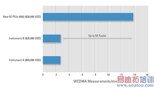 图6. 相比于传统仪器,基于LabVIEW、NI TestStand和PXI的NI并行化测试平台,提供了5倍的测量速度改进和更高的精度